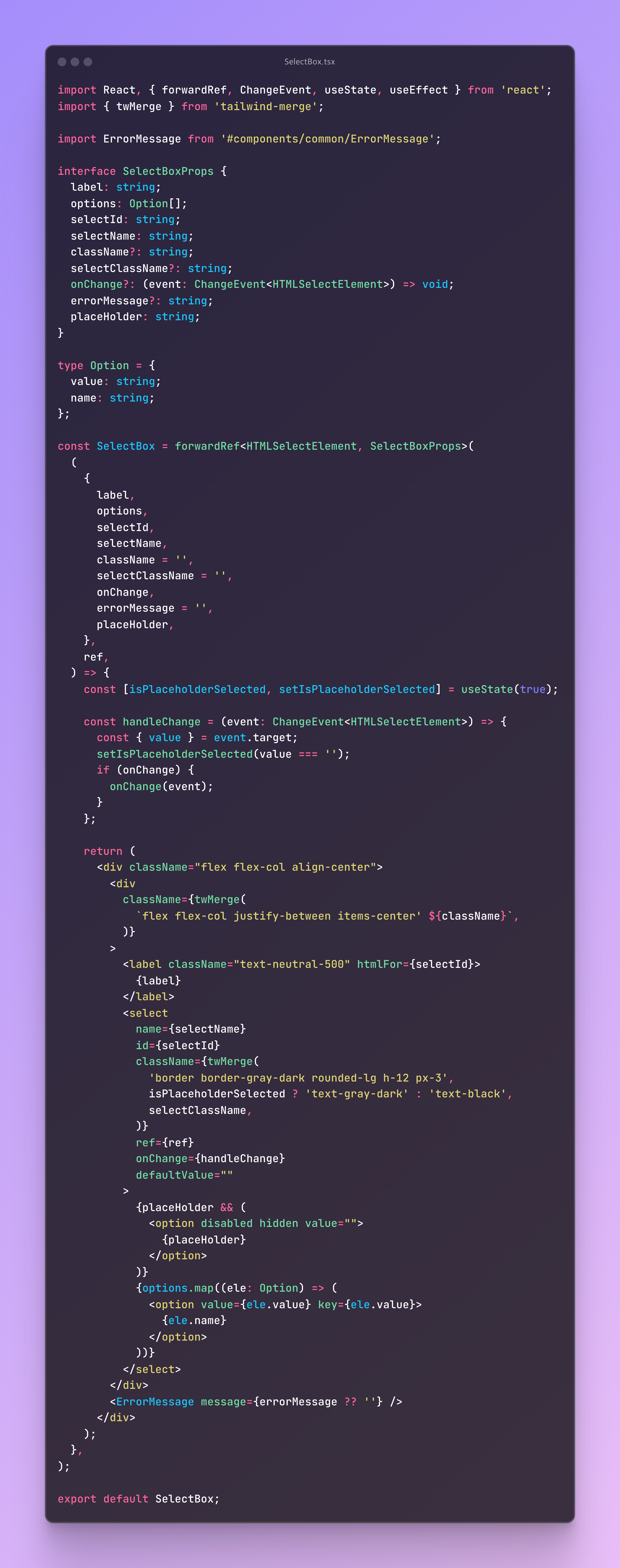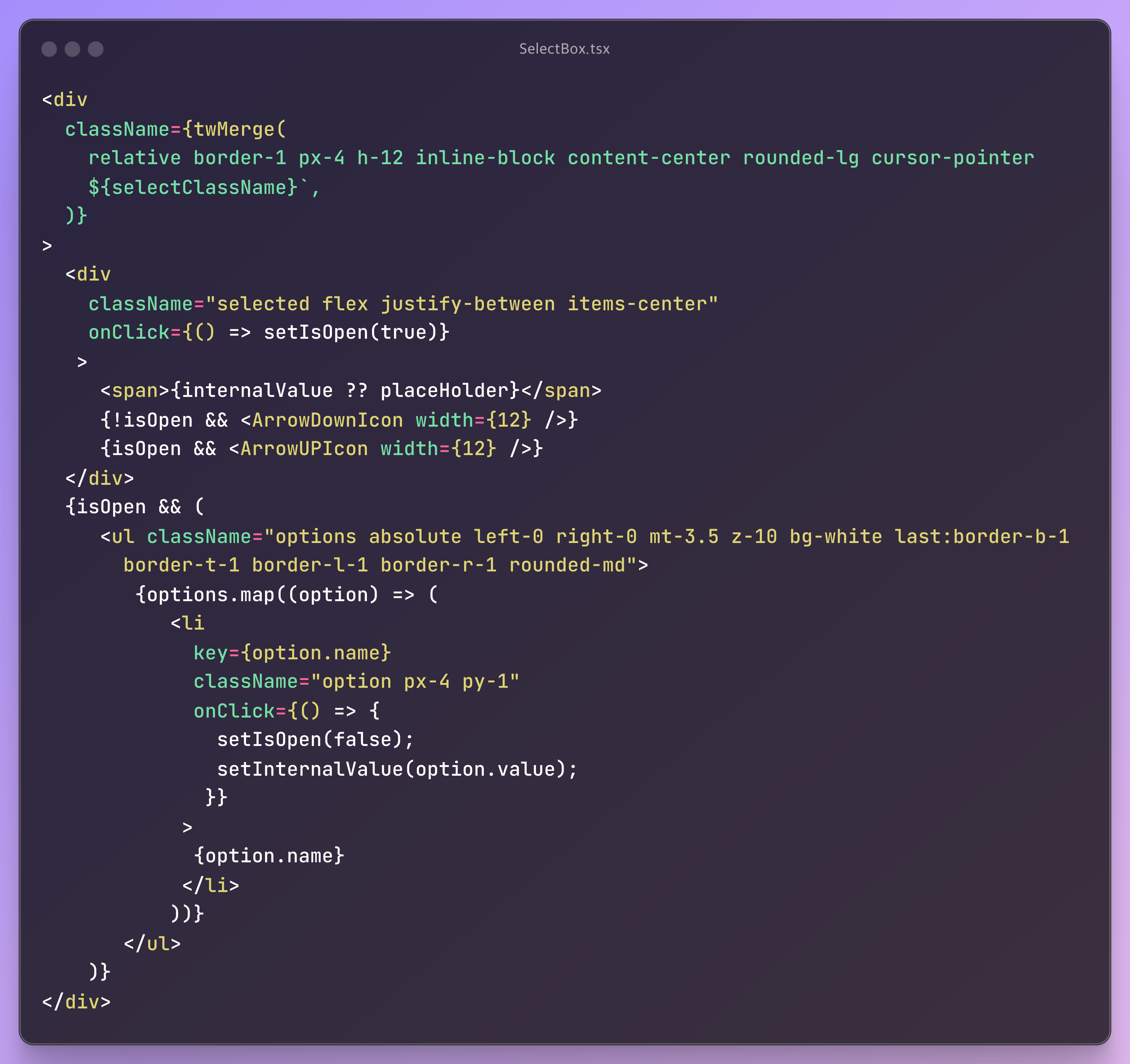 최종적으로 SelectBox 컴포넌트는 이렇게 만들어졌다.