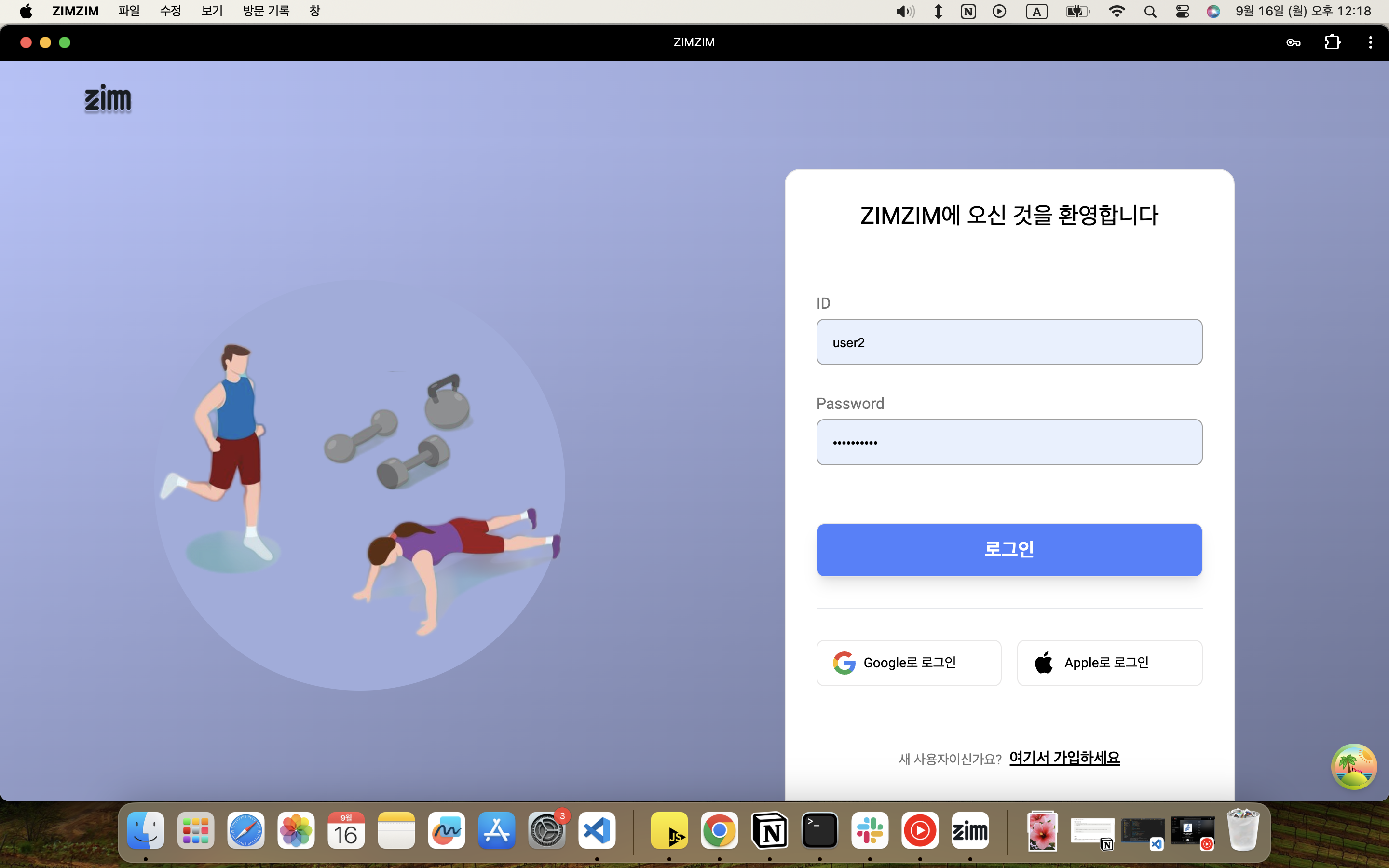 ZIMZIM은 사용자가 운동 기록과 음수량을 기록하는 어플이다.