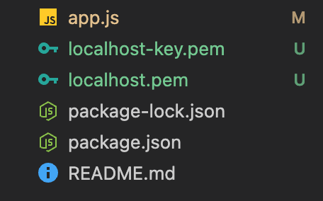 brew install mkcert 한 후 mkcert localhost를 실행시키면 루트에 locolhost pem파일들이 생성된다.