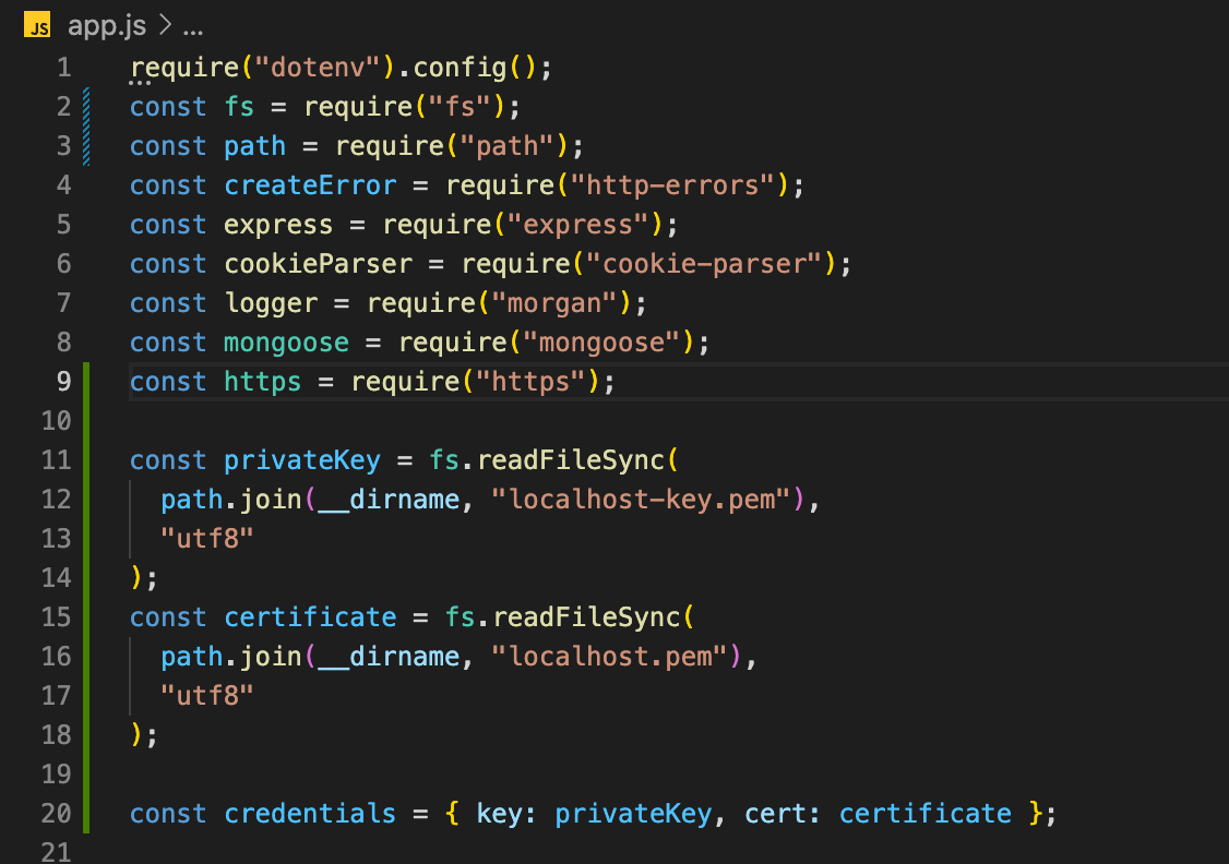 이후 app.js에 pem 파일을 읽을 수 있는 로직을 추가해준다.